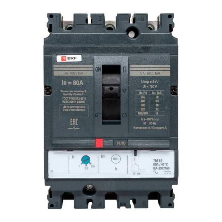 Выключатель автоматический 3п 160/80А 36кА ВА-99C Compact NS PROxima EKF mccb99C-160-80