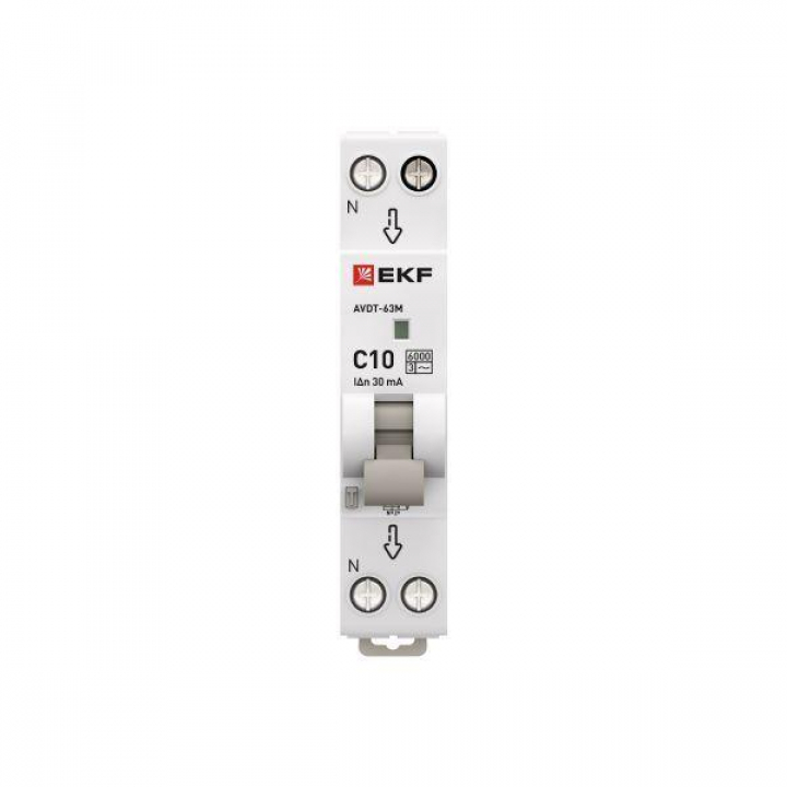 Автоматический выключатель дифференциального тока АВДТ-63 EKF PROxima представляет аппарат, сочетающий функции автоматического выключателя с электромеханическим или электронным УЗО. При обнаружении автоматическим выключателем в защищаемом участке сети тока утечки (повреждения) на землю или сверхтока (тока перегрузки иликороткого замыкания) происходит срабатывание устройства, приводящее к отключению защищаемой сети. Возможна коммутация алюминиевым и медным проводником.Автоматический выключатель дифференциального тока малогабаритный АВДТ-63М EKF PROxima представляет аппарат, сочетающий функции автоматического выключателя с электронным УЗО типа АС в компактном корпусе шириной один модуль. При обнаружении автоматическим выключателем на защищаемом участке сети тока утечки (повреждения) на землю или сверхтока (тока перегрузки или короткого замыкания) происходит срабатывание устройства, приводящее к отключению защищаемой сети. Особое отличие дифференциальных автоматических выключателей EKF с электронным УЗО – в наличии блока защиты от перенапряжения. Возможна коммутация алюминиевым и медным проводом.