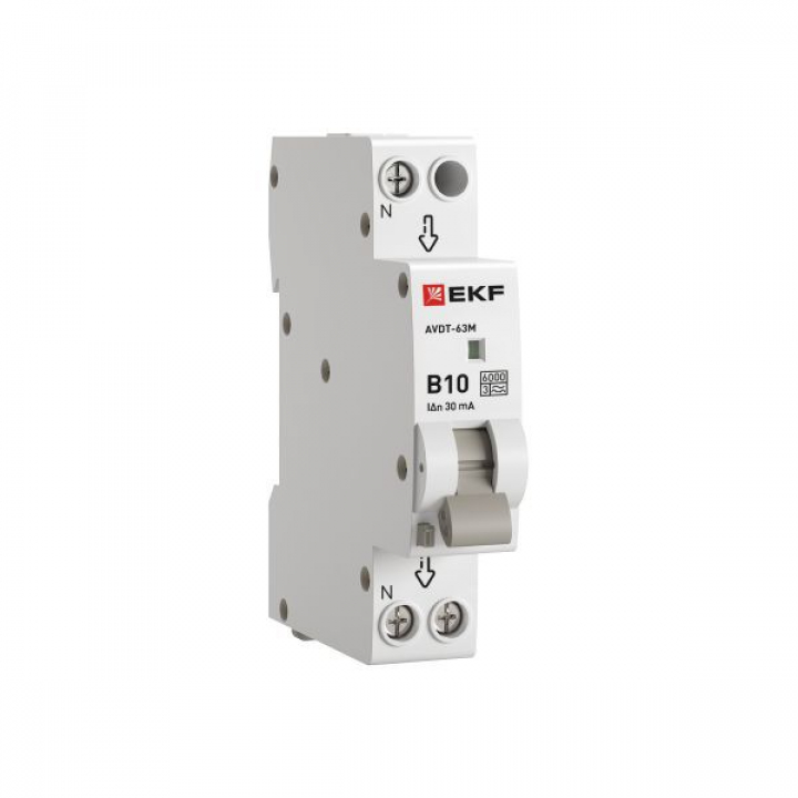 Автоматический выключатель дифференциального тока АВДТ-63 EKF PROxima представляет аппарат, сочетающий функции автоматического выключателя с электромеханическим или электронным УЗО. При обнаружении автоматическим выключателем в защищаемом участке сети тока утечки (повреждения) на землю или сверхтока (тока перегрузки иликороткого замыкания) происходит срабатывание устройства, приводящее к отключению защищаемой сети. Возможна коммутация алюминиевым и медным проводником.Автоматический выключатель дифференциального тока малогабаритный АВДТ-63М EKF PROxima представляет аппарат, сочетающий функции автоматического выключателя с электронным УЗО типа АС в компактном корпусе шириной один модуль. При обнаружении автоматическим выключателем на защищаемом участке сети тока утечки (повреждения) на землю или сверхтока (тока перегрузки или короткого замыкания) происходит срабатывание устройства, приводящее к отключению защищаемой сети. Особое отличие дифференциальных автоматических выключателей EKF с электронным УЗО – в наличии блока защиты от перенапряжения. Возможна коммутация алюминиевым и медным проводом.
