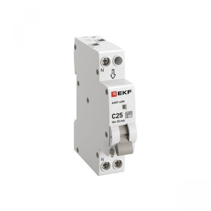 Выключатель автоматический дифференциального тока 1мод. C 25А 30мА тип AC 6кА АВДТ-63М электрон. PROxima EKF DA63M-25-30