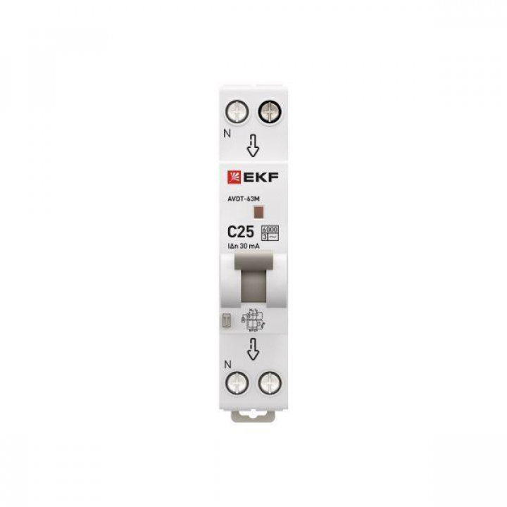 Автоматический выключатель дифференциального тока АВДТ-63 EKF PROxima представляет аппарат, сочетающий функции автоматического выключателя с электромеханическим или электронным УЗО. При обнаружении автоматическим выключателем в защищаемом участке сети тока утечки (повреждения) на землю или сверхтока (тока перегрузки иликороткого замыкания) происходит срабатывание устройства, приводящее к отключению защищаемой сети. Возможна коммутация алюминиевым и медным проводником.Автоматический выключатель дифференциального тока малогабаритный АВДТ-63М EKF PROxima представляет аппарат, сочетающий функции автоматического выключателя с электронным УЗО типа АС в компактном корпусе шириной один модуль. При обнаружении автоматическим выключателем на защищаемом участке сети тока утечки (повреждения) на землю или сверхтока (тока перегрузки или короткого замыкания) происходит срабатывание устройства, приводящее к отключению защищаемой сети. Особое отличие дифференциальных автоматических выключателей EKF с электронным УЗО – в наличии блока защиты от перенапряжения. Возможна коммутация алюминиевым и медным проводом.