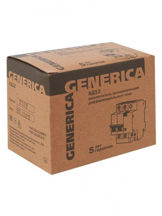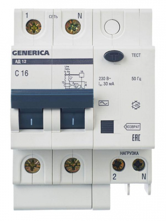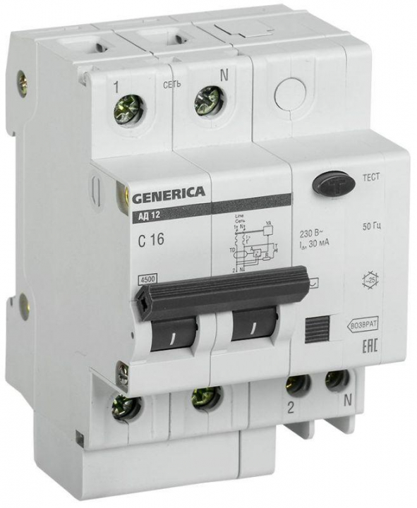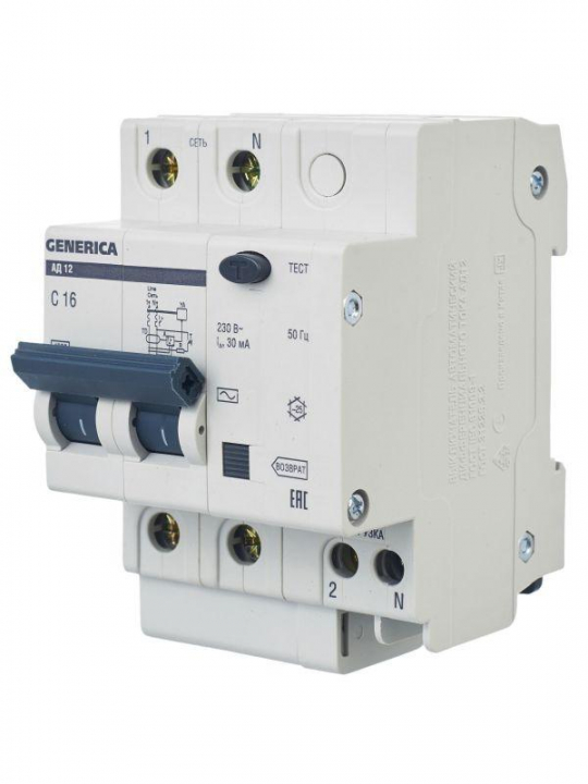 Выключатель автоматический дифференциального тока 2п 16А 30мА АД12 GENERICA MAD15-2-016-C-030