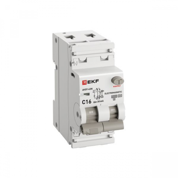 Выключатель автоматический дифференциального тока 2п (1P+N) C 16А 30мА тип A 6кА АВДТ-63N (электромех.) PROxima EKF D63N26MA16C30