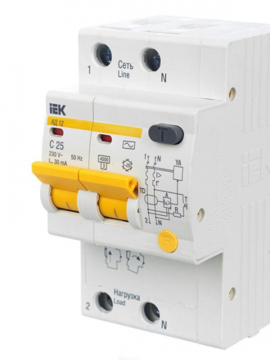 Выключатель автоматический дифференциального тока 2п C 25А 30мА тип AC 4.5кА АД-12 KARAT IEK MAD10-2-025-C-030