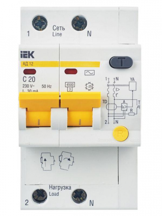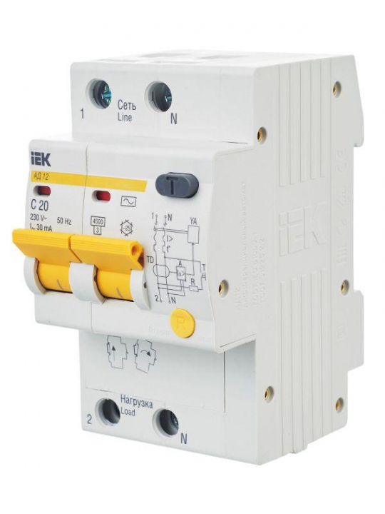 Выключатель автоматический дифференциального тока 2п C 20А 30мА тип AC 4.5кА АД-12 KARAT IEK MAD10-2-020-C-030