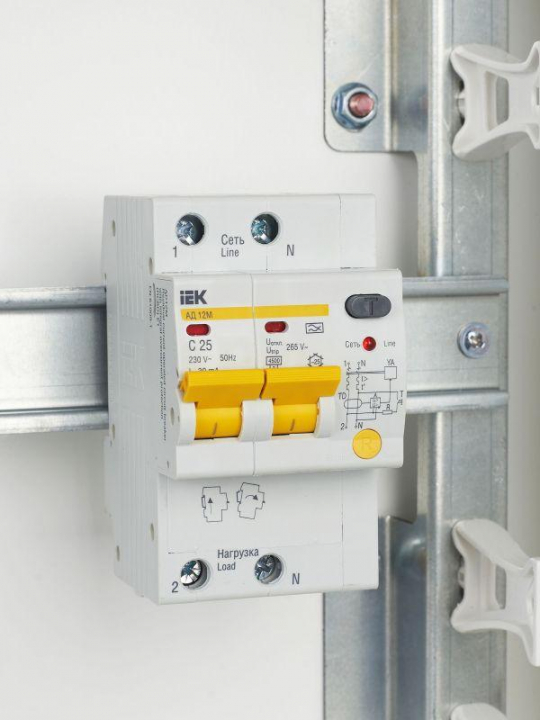 Быстродействующие защитные выключатели обеспечивают: в исполнении с уставками срабатывания 10 и 30 мА: - защиту людей от поражения электрическим током при прямом непреднамеренном прикосновении к токоведущим частям электрооборудования; в исполнении с уставками срабатывания 100 и 300 мА: – защиту от пожара из-за возгорания изоляции токоведущих частей; – защиту от перегрузки и короткого замыкания; – защиту от недопустимого повышения напряжения сети (АД12М). В изделиях предусмотрена индикация срабатывания от дифференциального тока, а для АД12М также светодиодная индикация включенного состояния. АД12М сохраняет работоспособность при снижении напряжения электрической сети до 110 В. В качестве коммутационных аппаратов в изделиях использованы выключатели автоматические ВА47-29 новой серии.