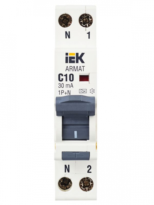Выключатель автоматический дифференциального тока 2п (1P+N) C 10А 30мА тип A АВДТ B06S 18мм ARMAT IEK AR-B06S-1N-C10A030