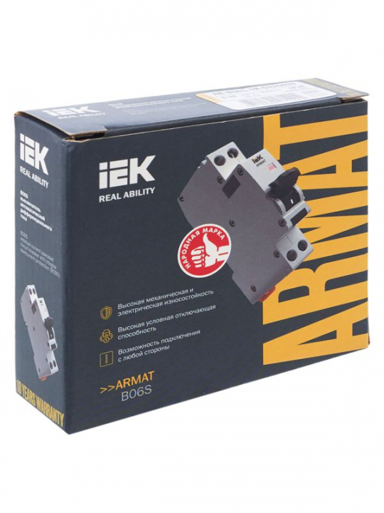 - Номинальная отключающая способность по IEC 60947-2: 6