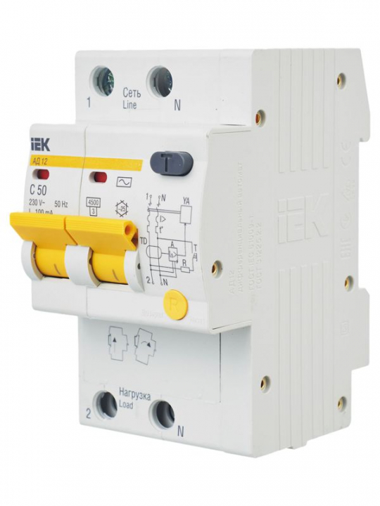 Выключатель автоматический дифференциального тока 2п C 50А 100мА тип AC 4.5кА АД-12 KARAT IEK MAD10-2-050-C-100