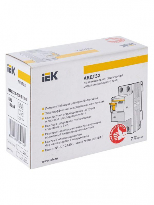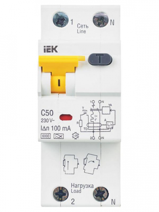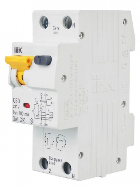 Выключатель автоматический дифференциального тока 2п (1P+N) C 50А 100мА тип A 6кА АВДТ-32 KARAT IEK MAD22-5-050-C-100