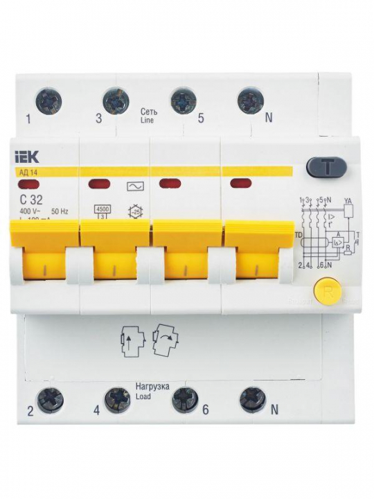 Выключатель автоматический дифференциального тока 4п C 32А 100мА тип AC 4.5кА АД-14 KARAT IEK MAD10-4-032-C-100