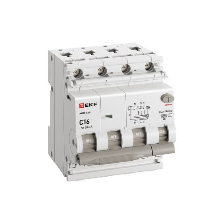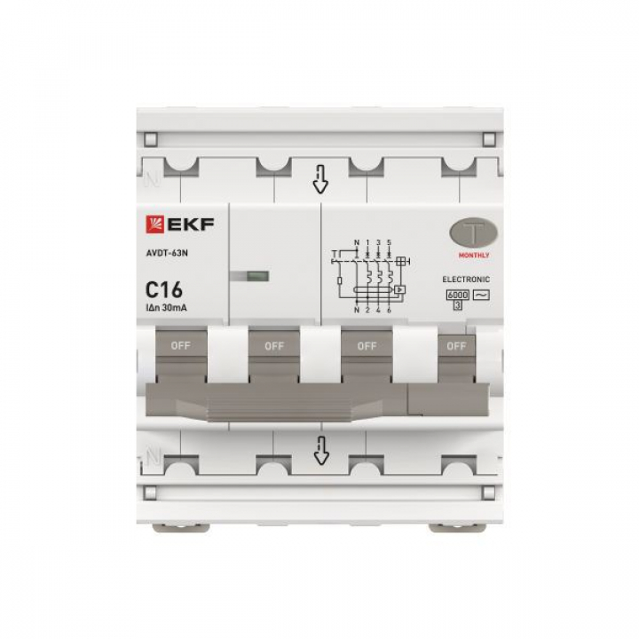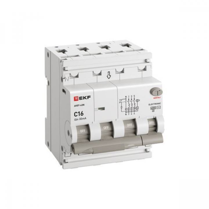 Выключатель автоматический дифференциального тока 4п (3P+N) C 16А 30мА тип AC 6кА АВДТ-63N электронный PROxima EKF D63N46E16C30