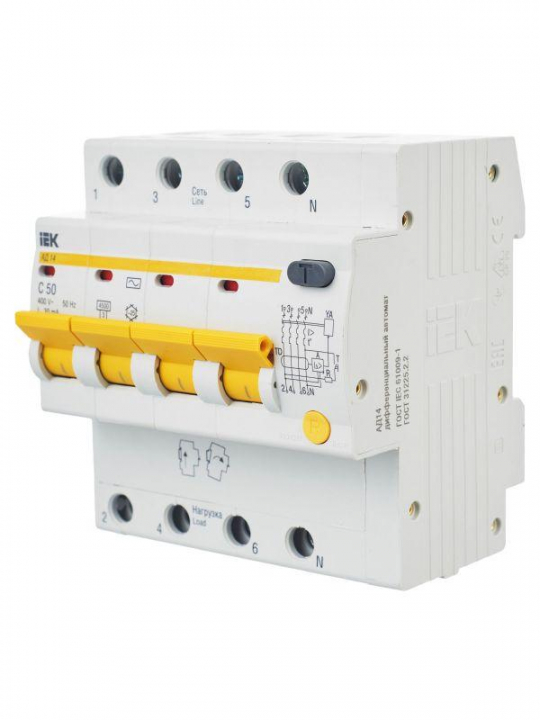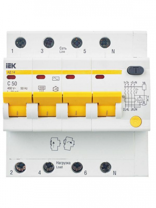 Выключатель автоматический дифференциального тока 4п C 50А 30мА тип AC 4.5кА АД-14 KARAT IEK MAD10-4-050-C-030