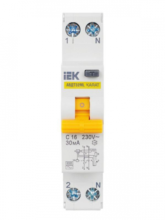 Выключатель автоматический дифференциального тока C 16А 30мА АВДТ32МL KARAT IEK MVD12-1-016-C-030