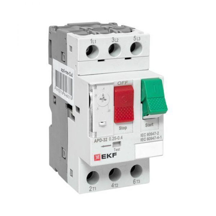 Автоматические выключатели пуска двигателя серии АПД-32 EKF PROxima с термомагнитным расцепителем специально предназначены для коммутаций цепей переменного тока напряжением до 690 В частотой 50/60 Гц, а также для управления и защиты трехфазных асинхронных двигателей от перегрузки, обрыва фазы, короткого замыкания.