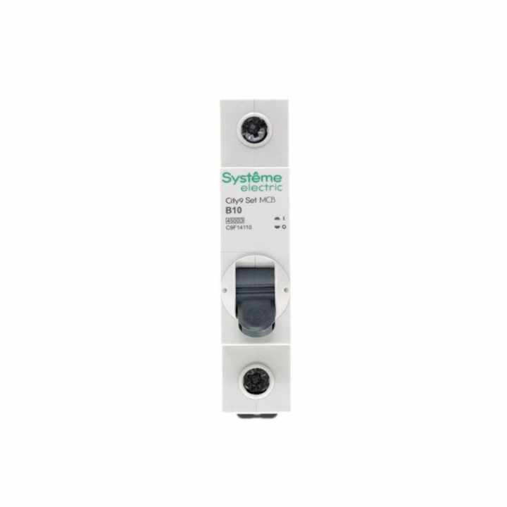 Автоматический выключатель серии City9 Set Systeme Electric, 1-полюсный, номинальный ток 10 А, характеристика B, Icn = 4.5 кА. Применяется в электрических сетях напряжением 230 В. Предназначен для защиты от перегрузок и токов короткого замыкания. Оснащен механизмом «мгновенной коммутации». Ударопрочный корпус из специального пластика с 6 металлическими заклепками. Безопасные клеммы исключают попадание кабелей в заклеммное пространство (ранее Schneider Electric EZ9F14110).