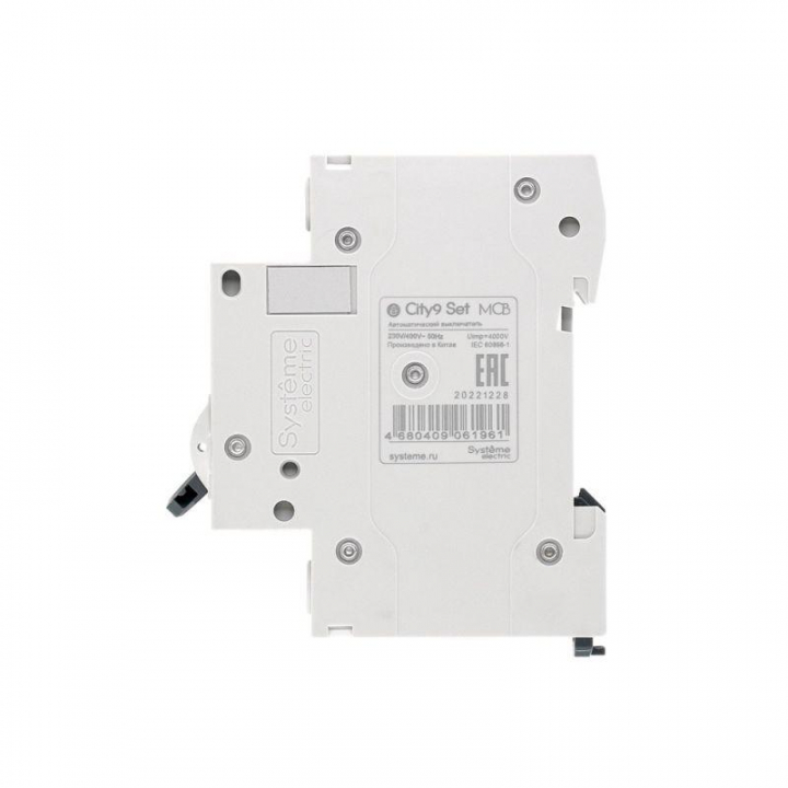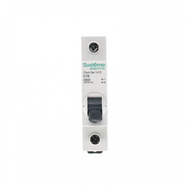 Автоматический выключатель серии City9 Set Systeme Electric, 1-полюсный, номинальный ток 16 А, характеристика С, Icn = 4.5 кА. Применяется в электрических сетях напряжением 230 В. Предназначен для защиты от перегрузок и токов короткого замыкания. Оснащен механизмом «мгновенной коммутации». Ударопрочный корпус из специального пластика с 6 металлическими заклепками. Безопасные клеммы исключают попадание кабелей в заклеммное пространство (ранее Schneider Electric EZ9F34116).