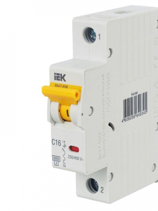 Выключатель автоматический модульный 1п C 16А 6кА ВА47-60M KARAT IEK MVA31-1-016-C