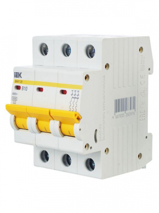 Выключатель автоматический модульный 3п B 10А 4.5кА ВА47-29 KARAT IEK MVA20-3-010-B