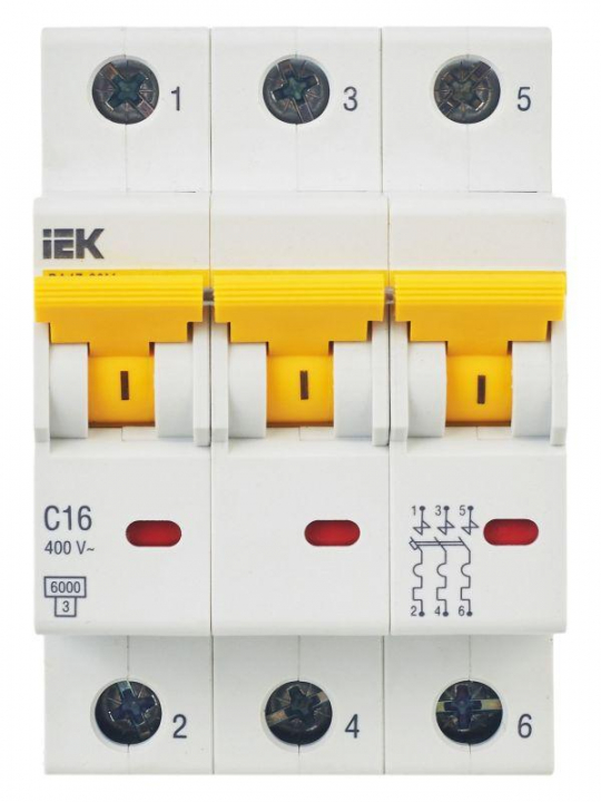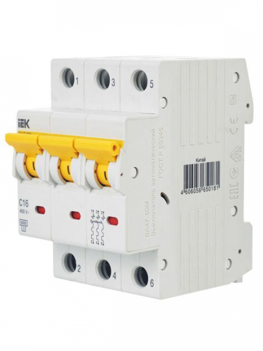 Выключатель автоматический модульный 3п C 16А 6кА ВА47-60M KARAT IEK MVA31-3-016-C