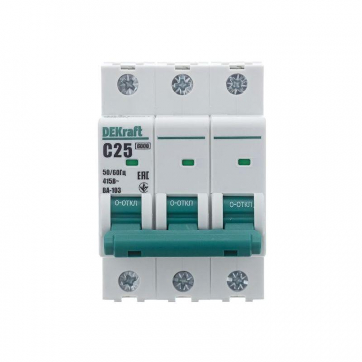 Выключатель автоматический модульный 3п C 25А 6кА ВА-103 DEKraft 12307DEK