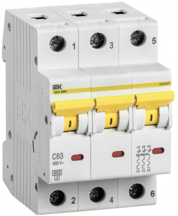 Выключатель автоматический модульный 3п C 63А 6кА ВА47-60M KARAT IEK MVA31-3-063-C