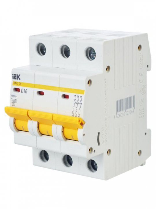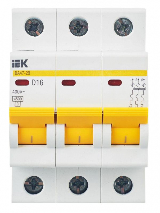 Выключатель автоматический модульный 3п D 16А 4.5кА ВА47-29 KARAT IEK MVA20-3-016-D