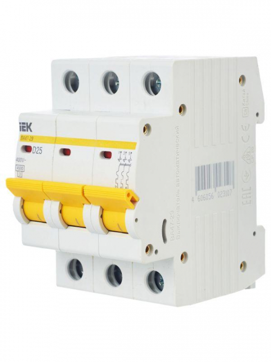Выключатель автоматический модульный 3п D 25А 4.5кА ВА47-29 KARAT IEK MVA20-3-025-D