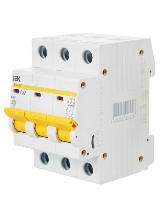 Выключатель автоматический модульный 3п D 32А 4.5кА ВА47-29 KARAT IEK MVA20-3-032-D