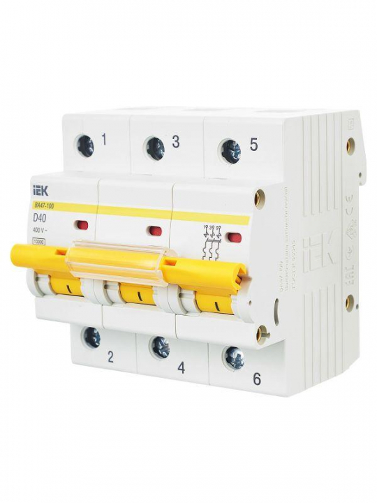 Выключатель автоматический модульный 3п D 40А 10кА ВА47-100 KARAT IEK MVA40-3-040-D