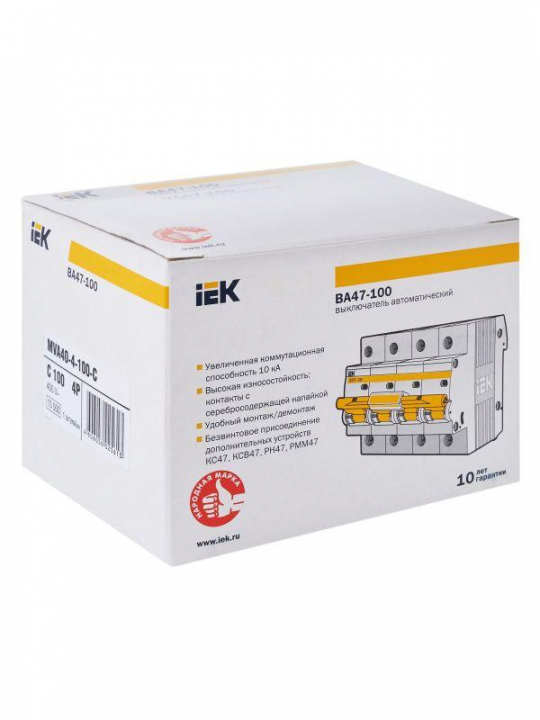 Выключатель автоматический модульный 4п C 100А 10кА ВА47-100 KARAT IEK MVA40-4-100-C