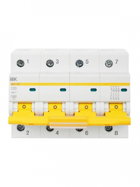 Выключатель автоматический модульный 4п C 80А 10кА ВА47-100 KARAT IEK MVA40-4-080-C