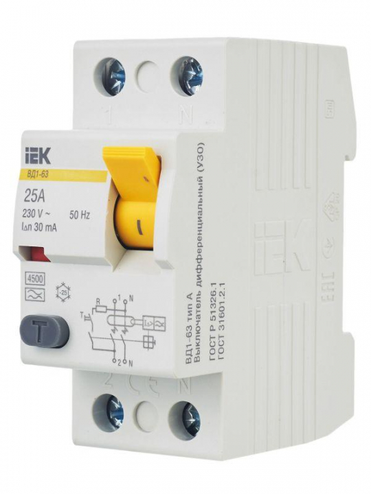 Выключатель дифференциального тока (УЗО) 2п 25А 30мА тип A ВД1-63 KARAT IEK MDV11-2-025-030