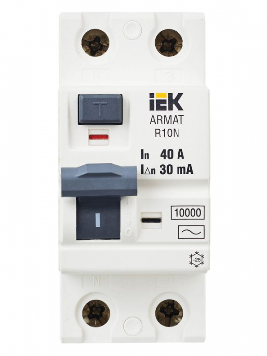 Выключатель дифференциального тока (УЗО) 2п 40А 30мА тип AC ВДТ R10N ARMAT IEK AR-R10N-2-040C030
