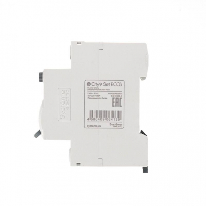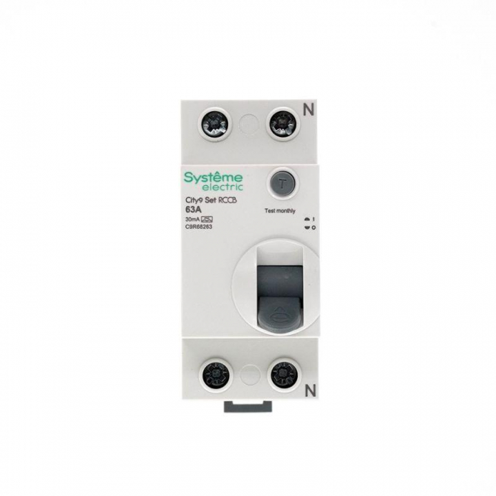 Выключатель дифференциального тока (ВДТ) или устройство защитного отключения (УЗО) серии City9 Set Systeme Electric, 2-полюсный, номинальный ток 63А, ток утечки 30 мА, тип А, электромеханический. Применяется в электрических сетях напряжением 230В. Уставка по току утечки 30 мА обеспечивает гарантированную защиту людей при прямом и косвенном прикосновении. Кнопка тест обеспечивает проверку работоспособности аппарата. Крепление на DIN-рейку шириной 35 мм. Подключение сверху и снизу. Безопасные клеммы.