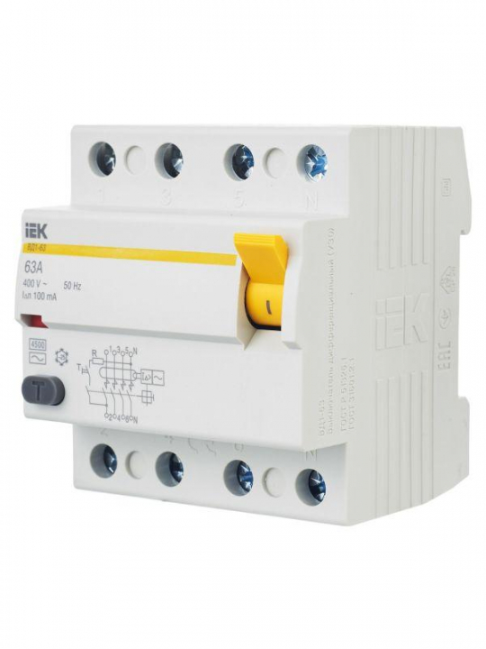 Выключатель дифференциального тока (УЗО) 4п 63А 100мА тип AC ВД1-63 KARAT IEK MDV10-4-063-100