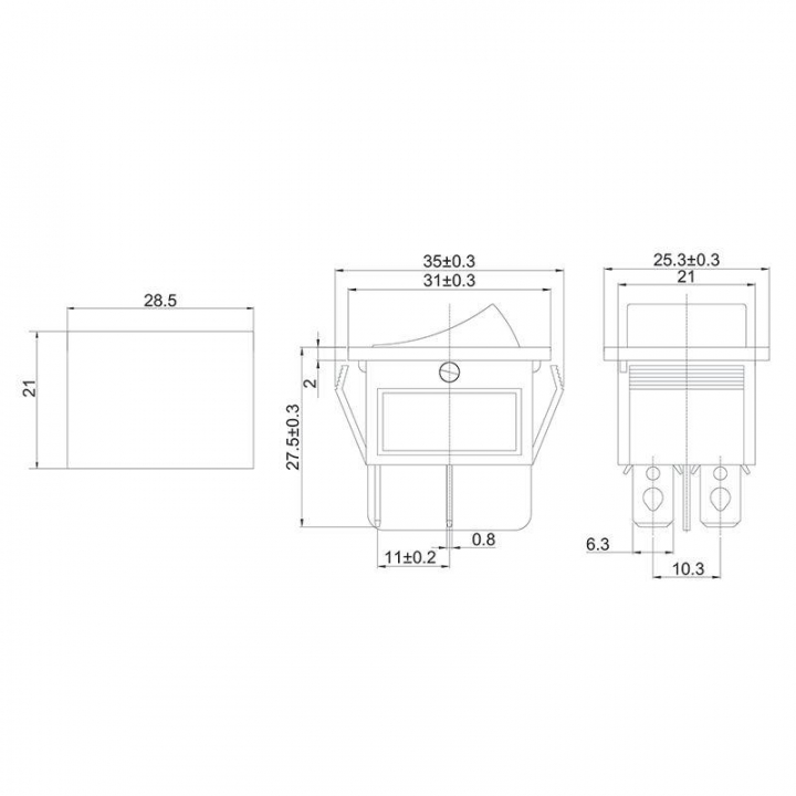 Клавишный выключатель ON-OFF предназначен для коммутации электрических цепей. Используется для включения и выключения различного электрооборудования: сетевых фильтров и удлинителей, звукового оборудования, электроустановок на производстве и в автомобиле. Имеет два положения: принцип работы основан на перемещении клавиши в одну из позиций. Для переключения требуется приложить некоторое усилие. Клавиша красного цвета оснащена подсветкой, которая помогает отслеживать рабочее состояние прибора и делает выключатель заметным в темноте. Монтаж осуществляется без применения винтов на плоских панелях толщиной от 0,8 до 3 мм. Контакты подключаются либо плоской клеммой, либо с помощью пайки. Предельное напряжение: 1500 В (АС) не более 1 минуты. Контактное сопротивление: не более 35 мОм.