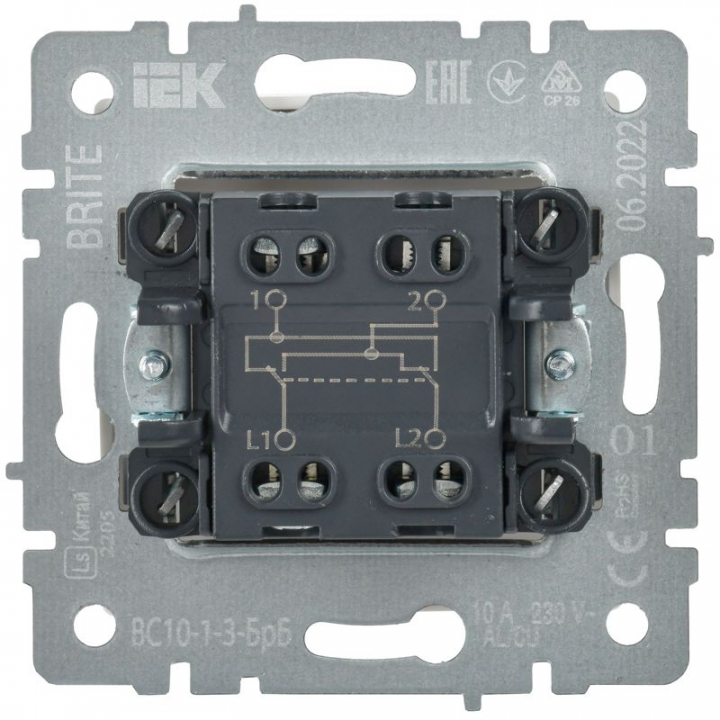 Выключатель перекрестный 1-кл. СП BRITE 10А ВС10-1-3-БрБ механизм бел. IEK BR-V13-0-10-K01