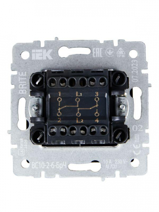 Выключатель проходной 2-кл. СП BRITE ВС10-2-6-БрЧ 10А механизм черн. IEK BR-V22-0-10-K02