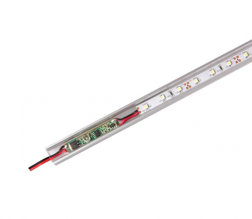 Выключатель сенсорный – удобное в применении устройство.Идеально подходят для установки в алюминиевый профиль PAL . Важно! Перед установкой в профиль следует извлечь выключатель из корпуса. Выключатель устанавливается в цепь между блоком питания и светодиодными источниками света согласно маркировки и с соблюдением полярности (красный провод «+», черный «–»). Выключатель сенсорный 2-х позиционный – 2 режима.